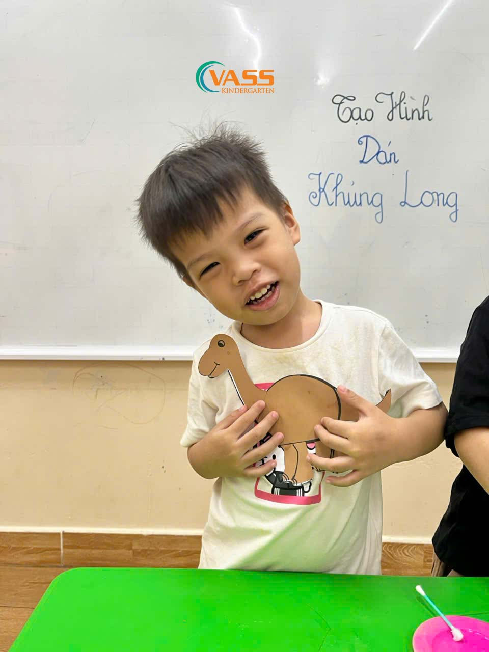 Trong tiết học, các bé được:🔹 Làm quen với hình dạng và đặc điểm của các loài khủng long🔹 Tự do lựa chọn màu sắc và sáng tạo theo trí tưởng tượng🔹 Thực hành kỹ năng cắt – dán, rèn luyện sự khéo léo
